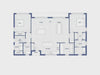 The floor plan is designed to maximize southern exposure, allowing natural light and outdoor views to fill the home throughout the day. The living and dining areas form one generous open-plan space, enhanced by two large floor-to-ceiling glass sliding doors positioned on opposite sides. These sliders seamlessly connect the interior with the surrounding landscape, creating a bright and airy living environment.